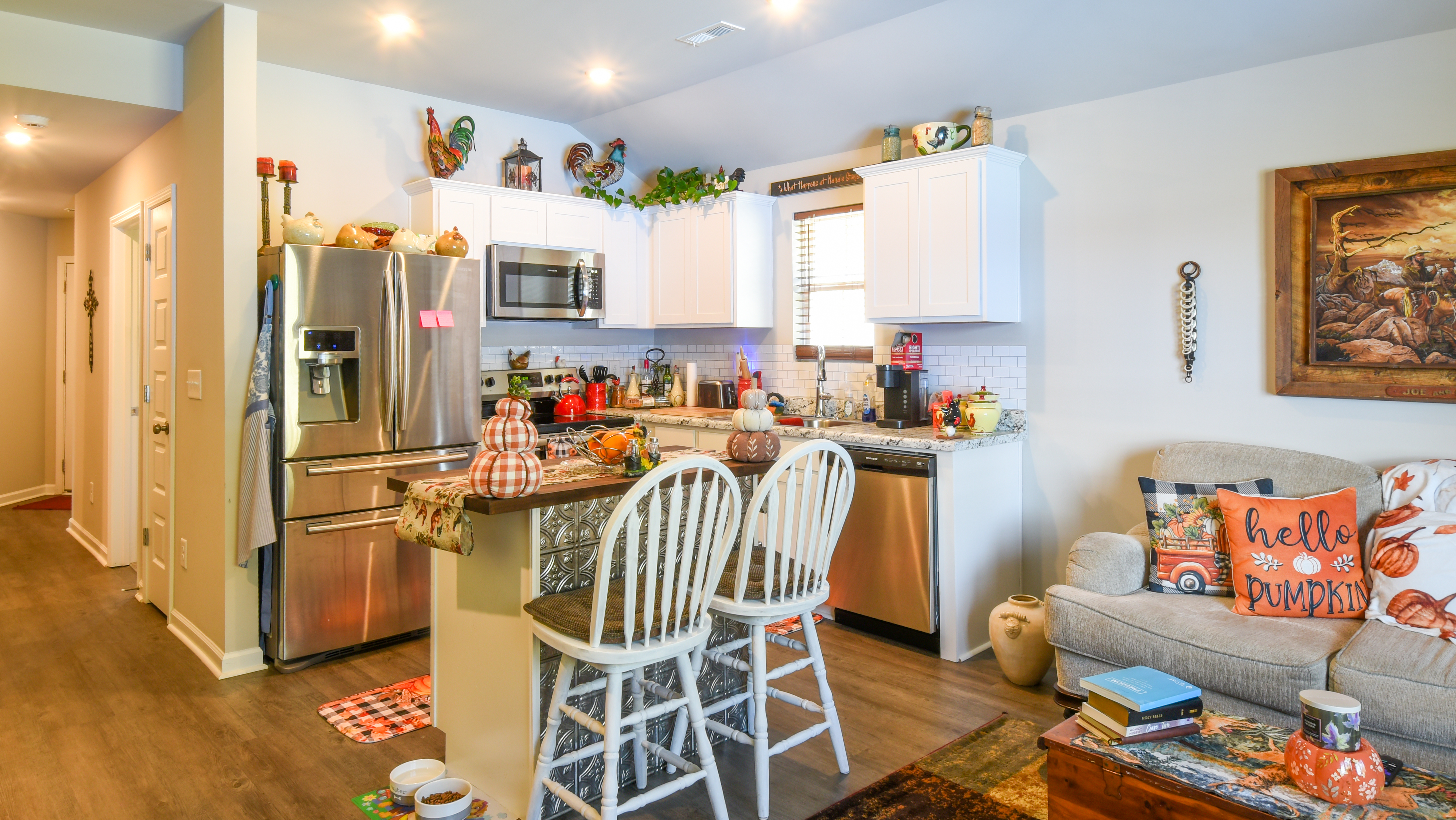 Step inside to find an open and inviting layout, highlighted by an added kitchen island that enhances both style and functionality – perfect for meal prep, casual dining, or entertaining. The spacious living areas flow seamlessly, while the bedrooms provide cozy retreats for relaxation.
